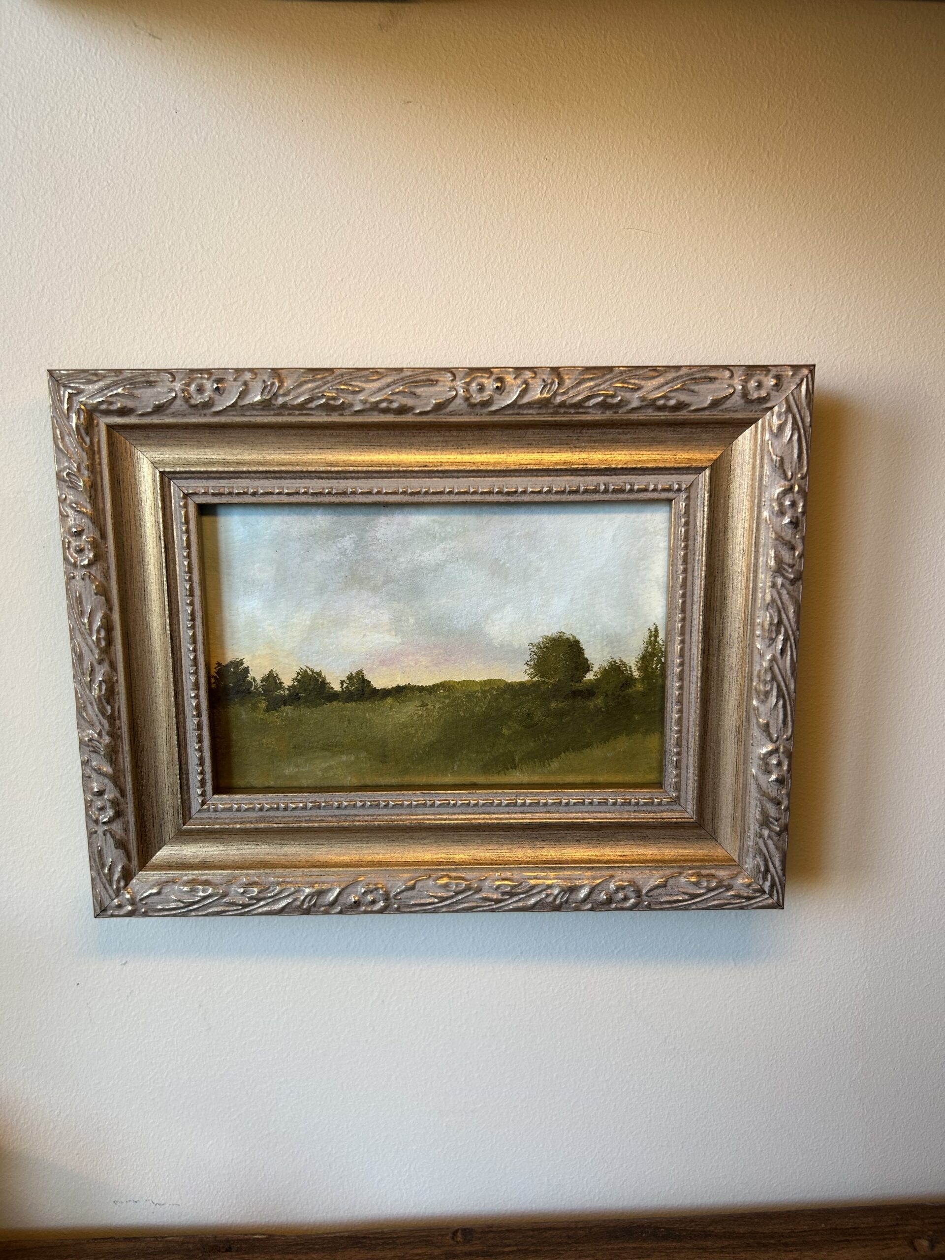 The artwork is presented in a sturdy frame, carefully selected to complement the painting.